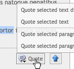 Sie können sich in Ihren Beiträgen und Texten auf Inhalte anderer Benutzer beziehen. Dabei steht Ihnen eine umfangreiche Zitatfunktion zur Verfügung. Bei allen Texten, die Sie zitieren können, finden Sie einen entsprechenden Button. Per Klick erhalten Sie ein Menü mit folgenden Optionen: